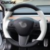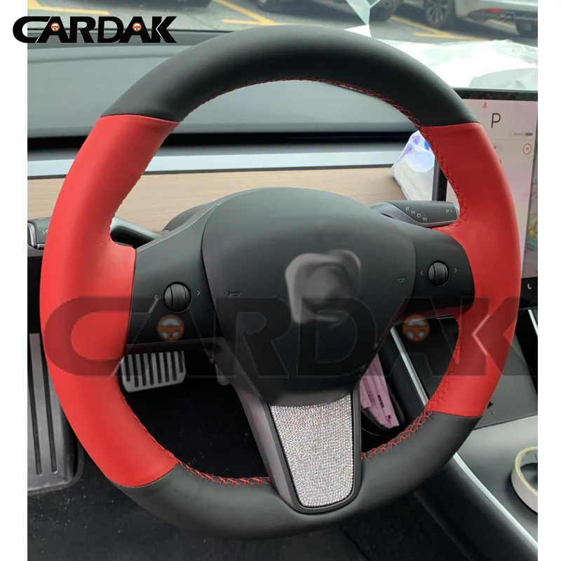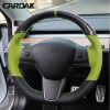 Top Perforated Leather Black Suede Car Steering Wheel Cover For Tesla Model 3 2017 2018 2019 Hand-stitch on Wrap